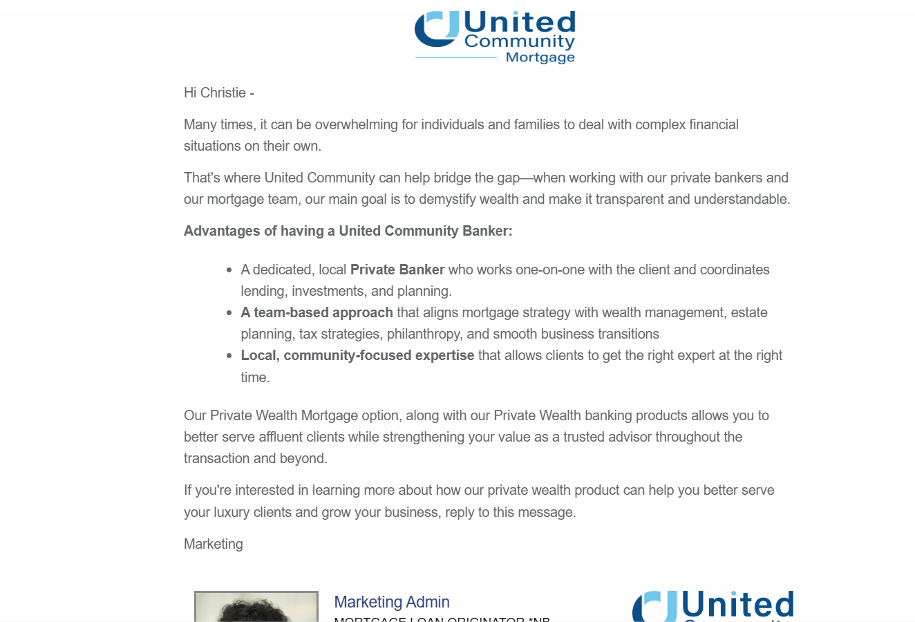 Originally from Charlotte, NC, my fondness for marketing led me to work for a graphic design company, to a world-wide manufacturing company, to a billion dollar bank in Greenville, SC. Working at United Community Bank for the last two years has served as a valuable learning experience and I am ever so grateful for the marketing knowledge and expertise I have gained . In efforts to expand my horizon, I am in search of a new position in the Greenville-Spartanburg area.